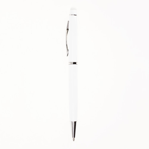 Автоматическая, шариковая ручка Bergamo Gloria со стилусом для сенсорных дисплеев. Хромированный, элегантный клип, носик и два декоративных кольца. Глянцевое покрытие, заменяемый стержень. Поворотный механизм. Цвет чернил - синий.